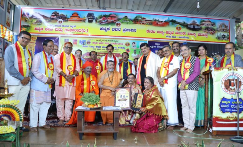 ಕನ್ನಡ ಭವನದ ಡಾ. ವಾಮನ್ ರಾವ್ ಬೇಕಲ್ -ಸಂಧ್ಯಾ ರಾಣಿ ದಂಪತಿಗಳಿಗೆ “ಗಡಿನಾಡ ಆದರ್ಶ ಕನ್ನಡ ದಂಪತಿಗಳು” ಗೌರವ ಪ್ರಶಸ್ತಿ ಎಡನೀರು ಶ್ರೀ ಗಳಿಂದ ಪ್ರದಾನ…