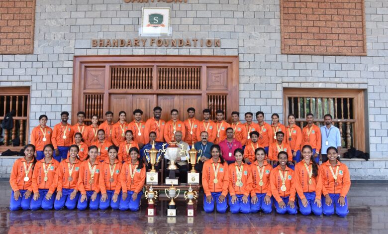 Mangaluru, April 1: The athletic team of Sahyadri College of Engineering & Management has once again showcased its sporting excellence by clinching the Overall Championship for the ninth time at the VTU 27th Inter-Collegiate State-Level Athletic Championship.